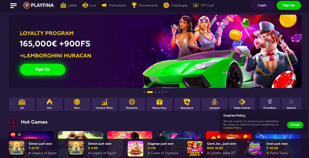 If you prefer classic casino games, table games like blackjack, roulette, poker, and baccarat are available at Playfina Casino. Test your skills and strategy against the dealer and other players for a chance to win big!